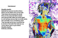 The immediate product of our early internet connection, and from which our subsequent relationship developed, came from our joint dismay and anger at the war(s) in Asia Minor. Responding to Scarlet’s antiwar comment, I wrote a poem called “Death from Above” about American drone warfare, an issue that is as troubling to me as my country’s use of torture. Scarlet responded by creating its visual complement, “Fear the Reaper.” From that initial artistic connection, we have gone on to create the series of artistic and verbal collaborations that are presented here, with more to follow. The subjects range across topics from politics to the enervating anomie of modern life to sexual desire. They are all political, in the sense that they try to create an alternative way of seeing and conceptualizing the world.